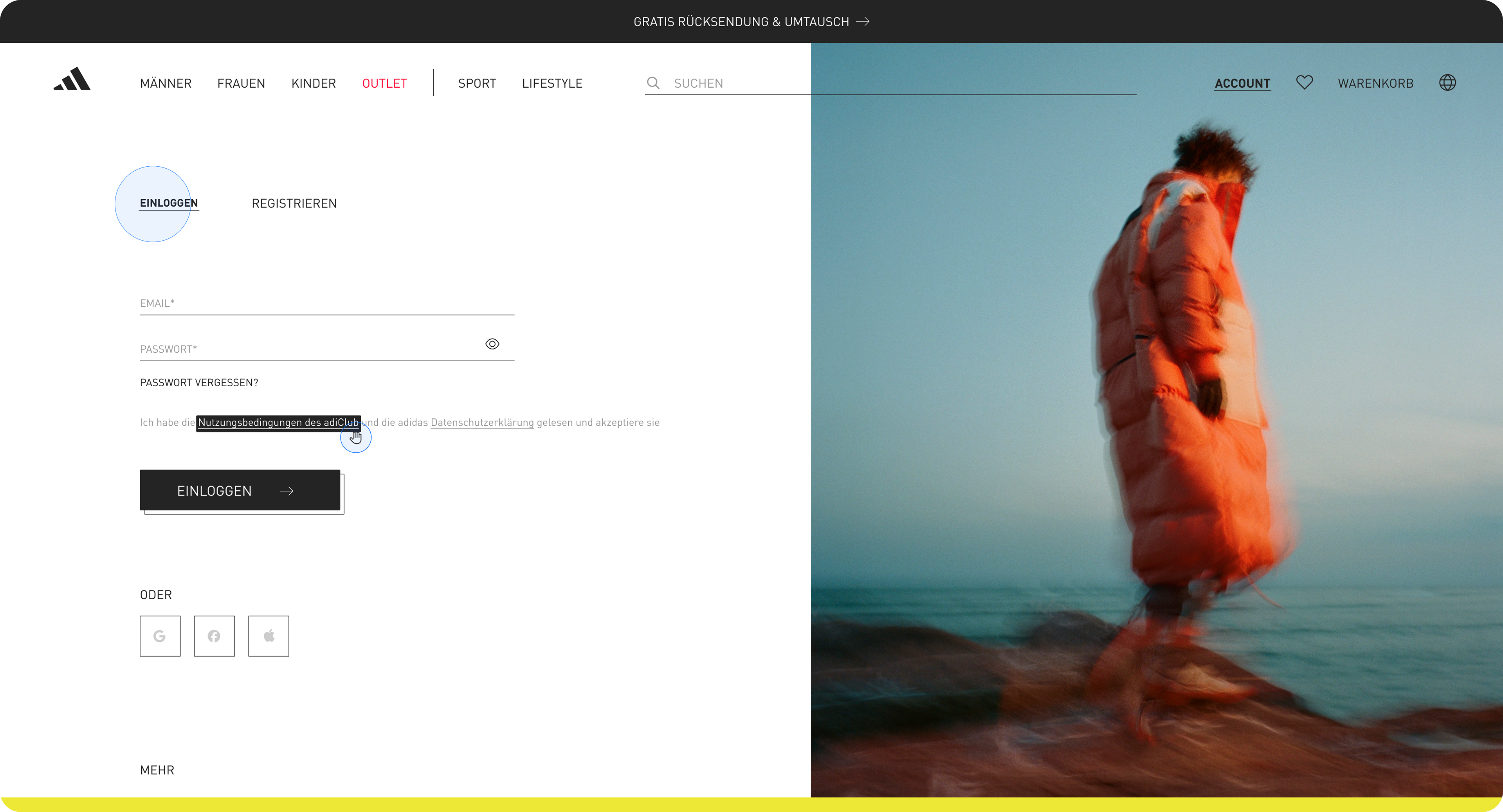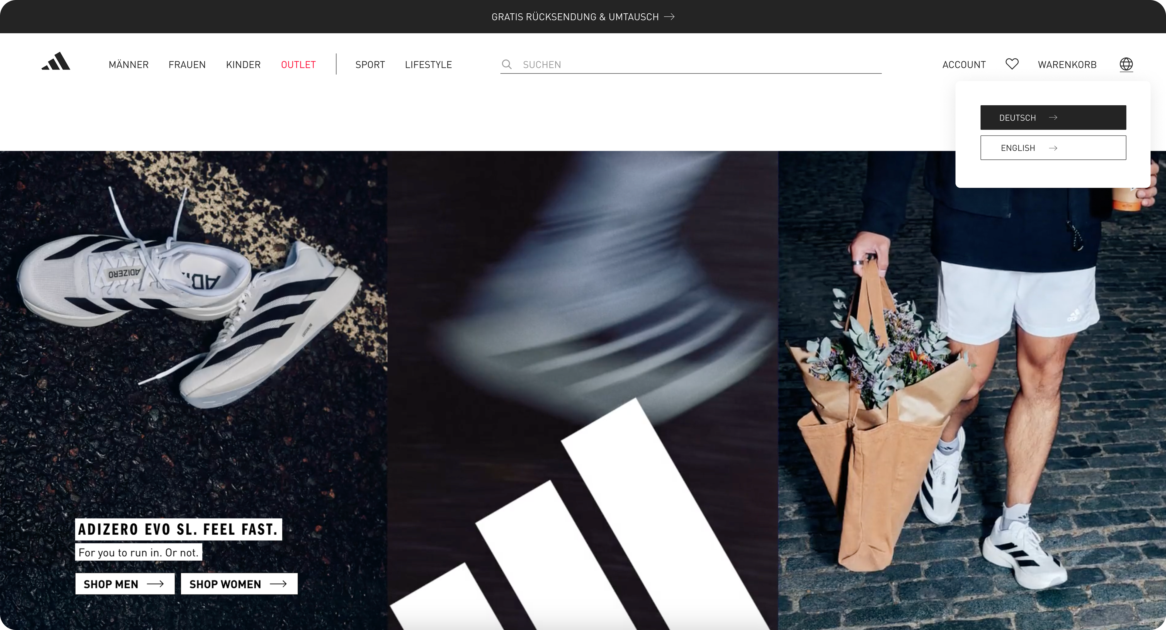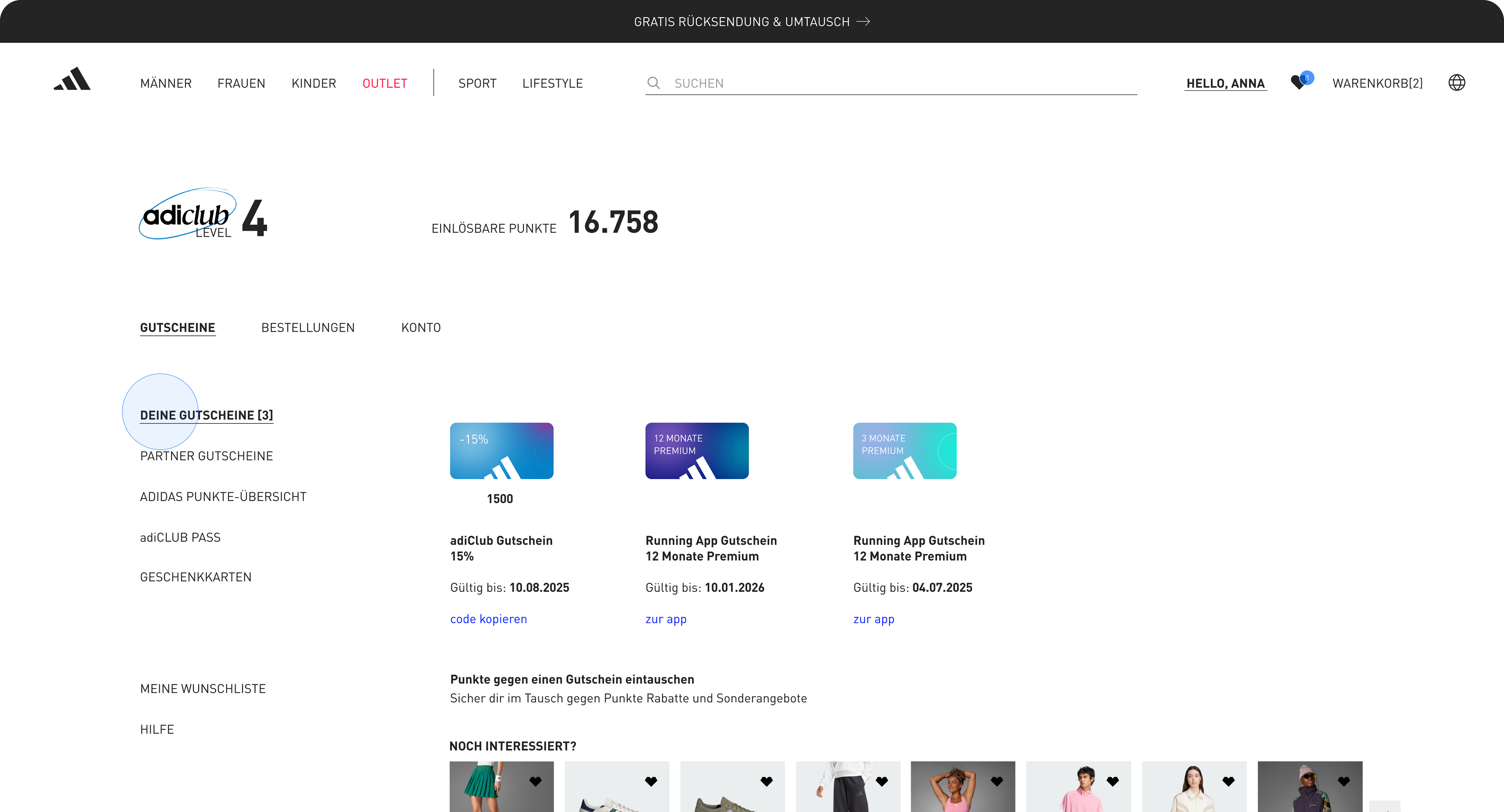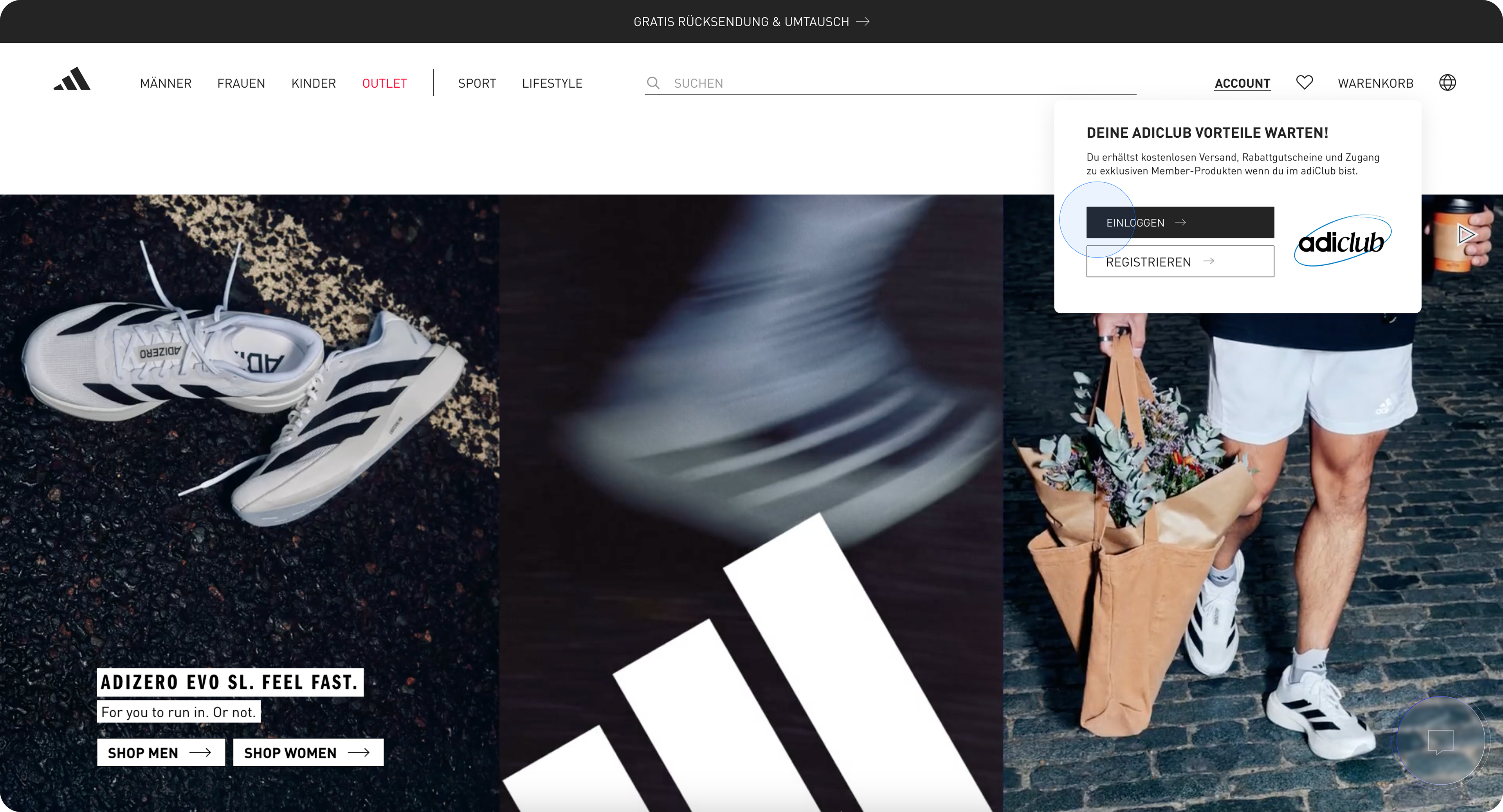 Enhancing menu navigation and account overview on adidas.de