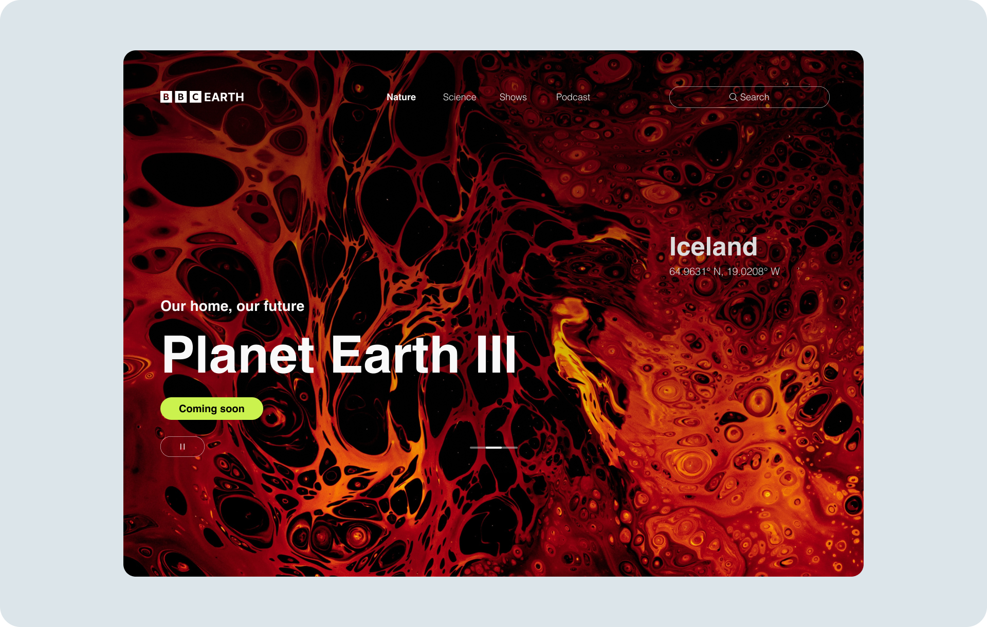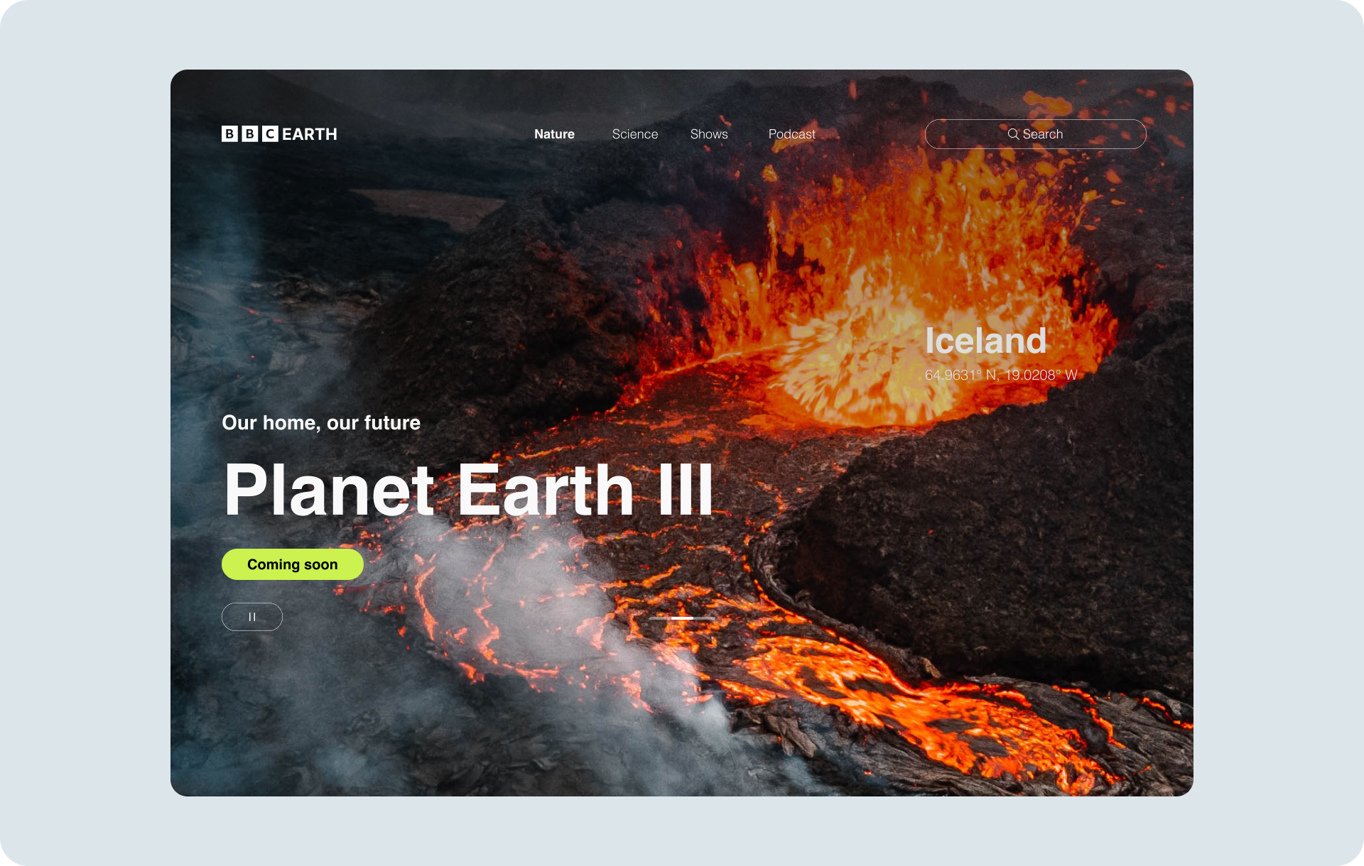 Experience the extraordinary through our meticulously designed landing page for BBC's 'Planet Earth.' Immerse yourself in an awe-inspiring journey where stunning cinematography and captivating narration converge to bring the wonders of our planet to life. This thoughtfully crafted landing page is your gateway to explore the breathtaking beauty of diverse ecosystems, witness incredible wildlife moments, and gain a deeper understanding of the delicate balance of nature. 🌋