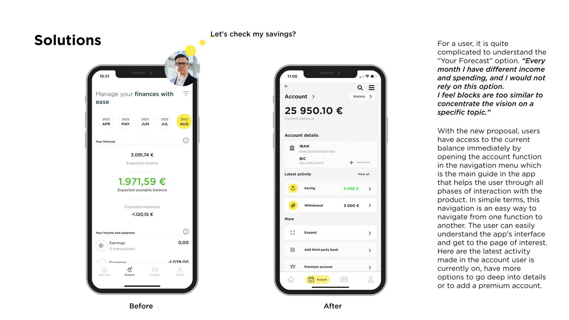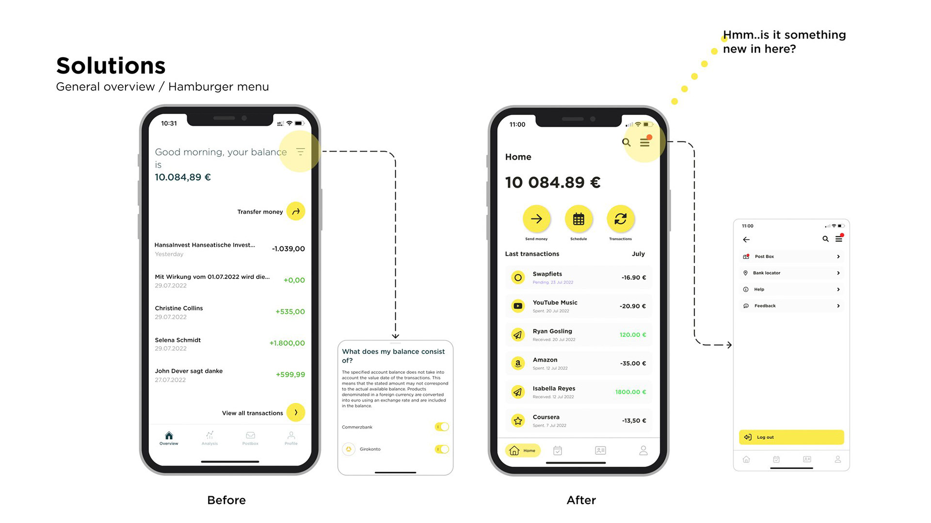 I researched and analyzed the user experience of Commerzbank's banking app by looking at user feedback on App Store and Play Store, conducting interviews, and analyzing competitors.
