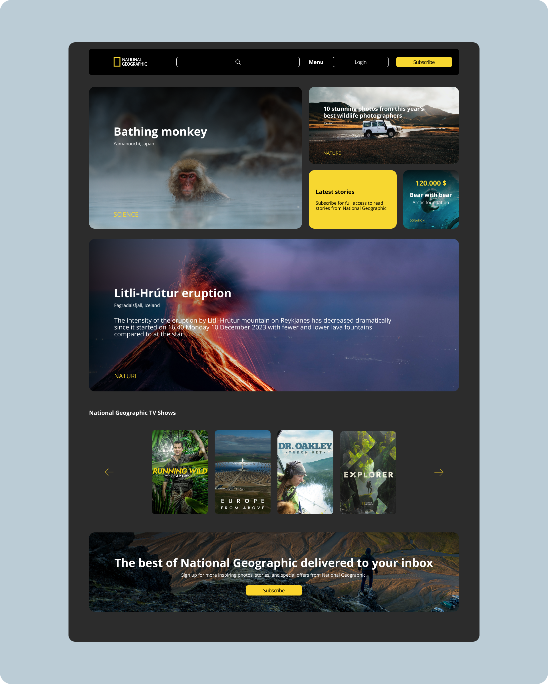 Experience the world at your fingertips with the National Geographic Landing Page. Immerse yourself in a captivating blend of stunning visuals, awe-inspiring stories, and cutting-edge exploration. Our thoughtfully crafted landing page is your portal to the extraordinary, inviting you to discover the wonders of nature, science, and culture. Navigate seamlessly through a tapestry of curiosity, knowledge, and adventure, as National Geographic unfolds the beauty of our planet. Join us on this digital expedition, where every click brings you closer to the remarkable stories that define our world. 🐒
