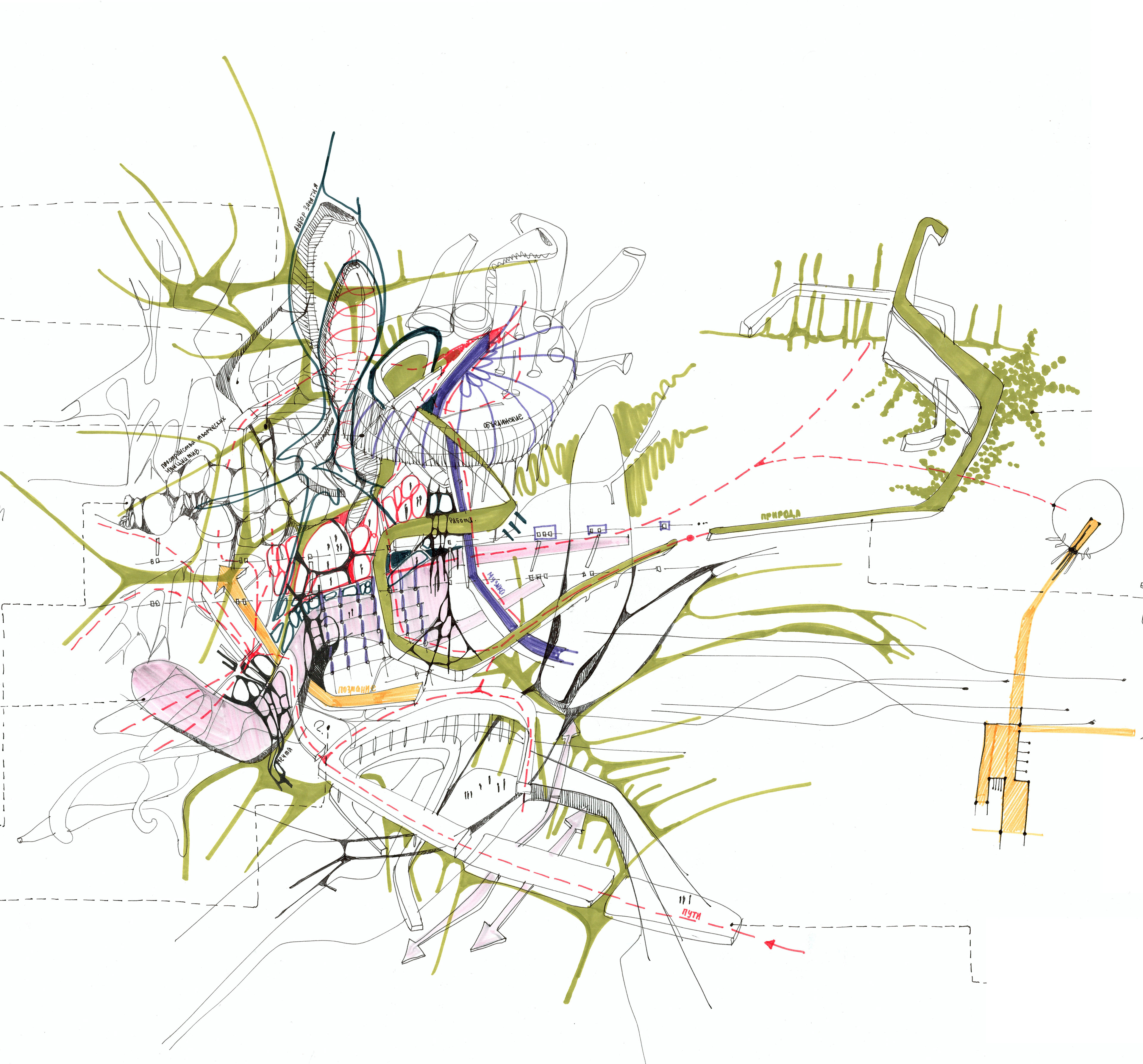 Active interaction with nature and a socially active environment are emphasized. The city adapts to society, breathes, interacts with humans, and is both flexible and dynamic. Active resource conservation and the integration of new technologies are essential. The concept envisions a comfortable life and work, where all functions intertwine for the convenience of human interaction and comfort in movement. It promotes harmony between humans and the city, with residential zones distributed to unite people based on their interests and professional characteristics.